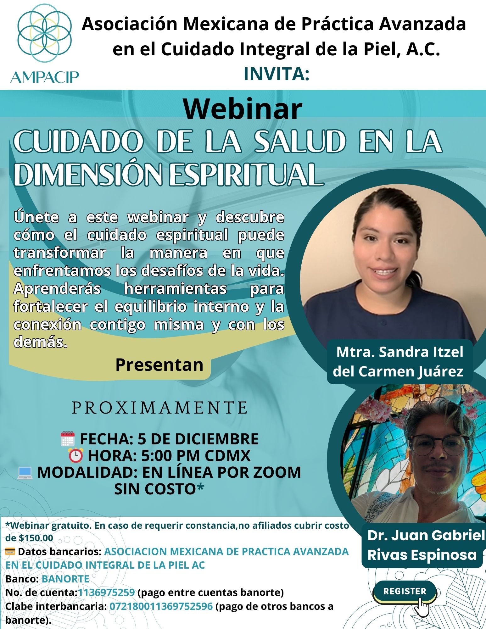 ZoomWebinar dirigido a personal del área de salud Seguridad y calidad en la atención como elementos clave para la prevención de lesiones en la piel Miércoles 26 de febrero de 2025, vía ZOOM. 5:00 pm, hora CDMX Webinar sin costo. No afiliados. En caso de requerir constancia inversión de $150. Las constancias solo se envían …